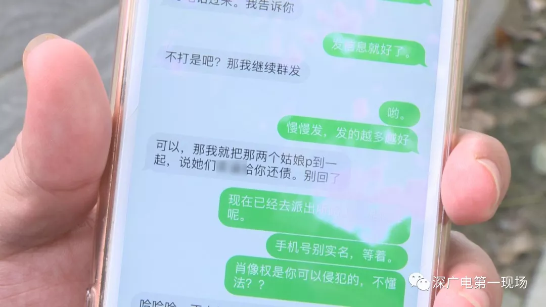 今天上午,記者在龍崗坪地一小區(qū)外見到了盧先生,他告訴記者,最近手機(jī)收到這樣一張圖片,圖片恰巧是他的一位女性朋友頭像,下面還配上一些關(guān)于“幫盧先生還債”的不實(shí)文字信息,內(nèi)容是盧先生已經(jīng)成了詐騙犯,現(xiàn)在正在當(dāng)“洗腳妹”幫盧先生還賬,圖片上還有盧先生的個(gè)人資料和電話號(hào)碼。