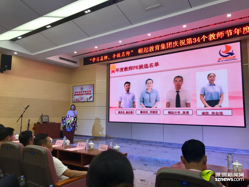 大會(huì)以“學(xué)習(xí)名師 爭(zhēng)做名師”為主題,活動(dòng)伊始,來(lái)自崛起實(shí)驗(yàn)中學(xué)的陳勇老師、翻身實(shí)驗(yàn)學(xué)校(東校區(qū))的楊壯峰老師、翻身實(shí)驗(yàn)學(xué)校(西校區(qū))的李麗君老師和誠(chéng)信實(shí)驗(yàn)學(xué)校的林會(huì)連老師進(jìn)行“年度教師PK”,通過(guò)現(xiàn)場(chǎng)演講和選題問(wèn)答,最終崛起實(shí)驗(yàn)中學(xué)的陳勇老師獲得“崛起教育集團(tuán)2018年度教師”榮譽(yù)稱號(hào),其他三位老師獲“崛起教育集團(tuán)2018年度教師”提名獎(jiǎng)。