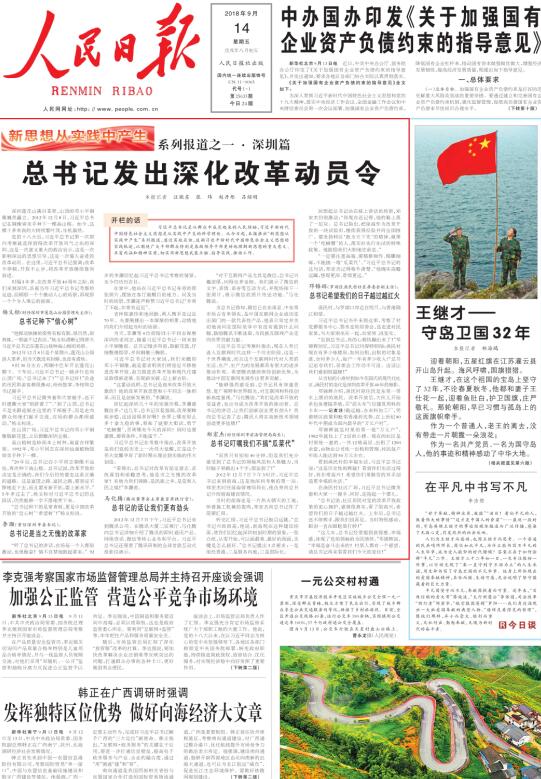 深圳登上人民日報頭版頭條:總書記在這里發(fā)出深化改革動員令