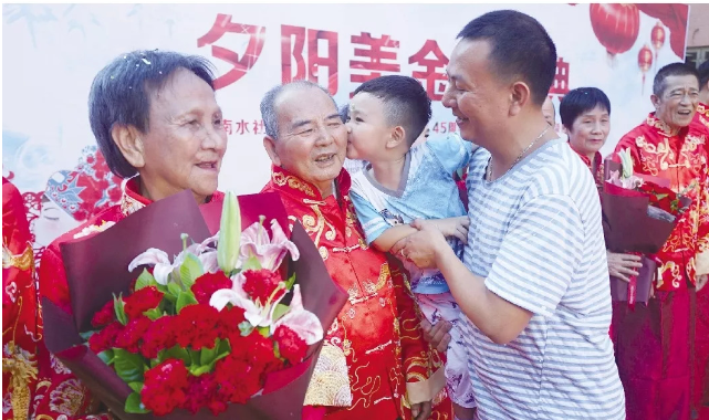 早年,南水村村民以耕種、養(yǎng)蠔、捕魚等為業(yè),數(shù)十載篳路藍縷,一點點改變村里的落后面貌?!笆芟抻谖镔|(zhì)匱乏,很多都沒有舉辦過正式的婚禮”,南水社區(qū)黨委第一書記巫紅強談到舉辦金婚慶典活動初衷時說,社區(qū)不能忘記老一輩所作出的貢獻,希望通過舉辦金婚慶典活動讓老人重溫“新婚”的甜蜜浪漫,讓老人切實感受到溫暖和關(guān)懷,向社區(qū)全體居民倡導(dǎo)尊老、敬老、愛老、助老的良好風(fēng)尚。此外,以喜慶活動為紐帶、平臺,聯(lián)結(jié)、凝聚更加濃厚的鄉(xiāng)情、鄰里情,讓社區(qū)居民感受融洽共處的幸福與溫暖,重溫南水大家庭的團結(jié)與同心,不斷推進社區(qū)和諧共融。