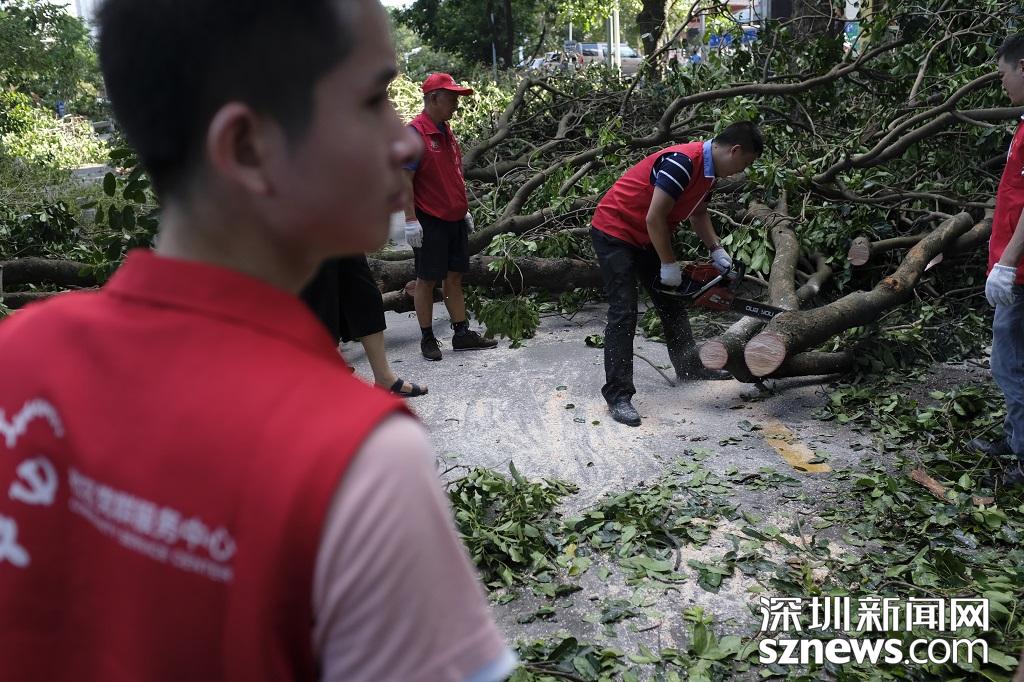2018年09月17日下午四點(diǎn)左右,景華社區(qū)義工正在用電鋸割斷倒落樹木,從而實(shí)現(xiàn)通車。