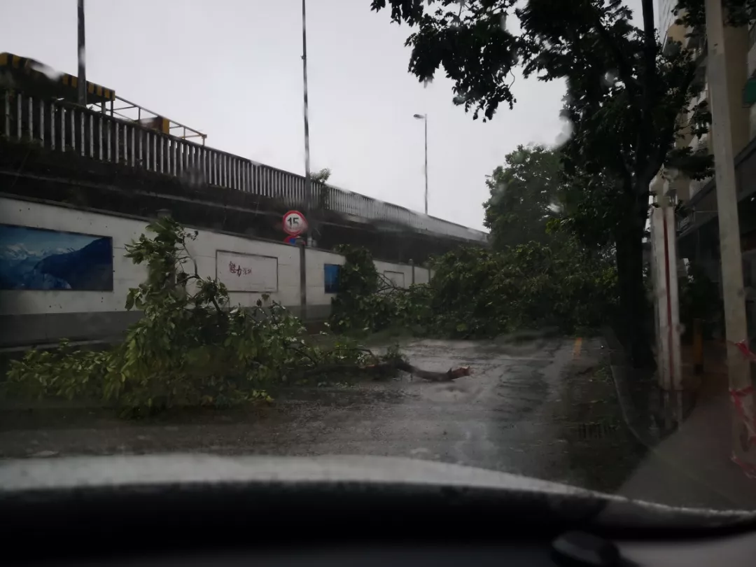 9月16日臺風侵襲深圳,下午1點半左右,南園所徐濤副所長帶領(lǐng)民警在街面查看災(zāi)情,路面滿地狼藉,被風刮斷的樹木橫七豎八,擋住許多車道。