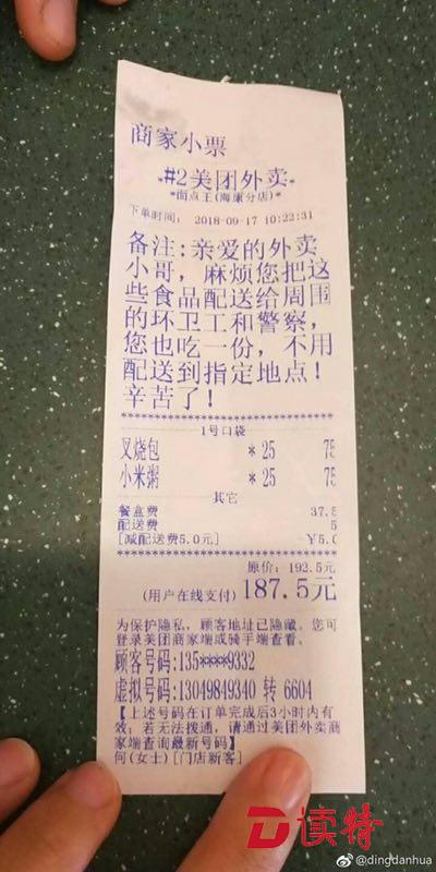 還有為這些前線工人送愛心外賣訂單的“何女士”