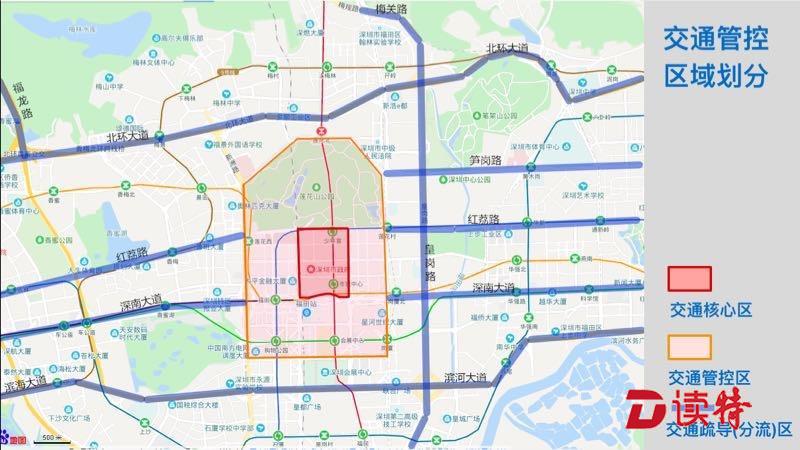 (三)交通疏導(dǎo)(分流)區(qū):交通管理區(qū)外圍相應(yīng)的深南大道、皇崗路、筍崗路、紅荔路、北環(huán)大道、梅觀路、福龍路、濱河大道、濱海大道等道路。