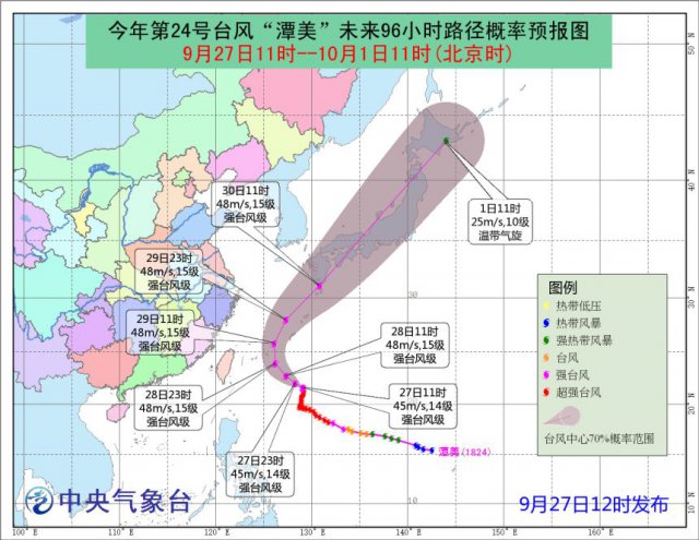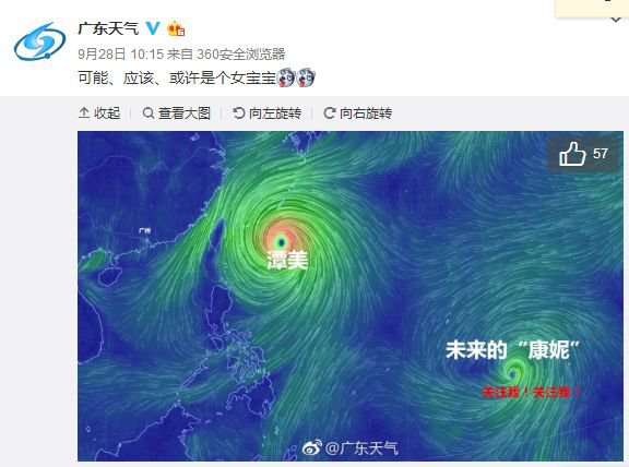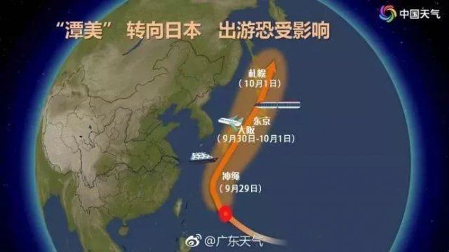 另?yè)?jù) @廣州天氣,"潭美"28-29日最接近臺(tái)灣,隨后掉頭往東北方向移動(dòng),國(guó)慶期間前往臺(tái)灣的朋友不用擔(dān)心。