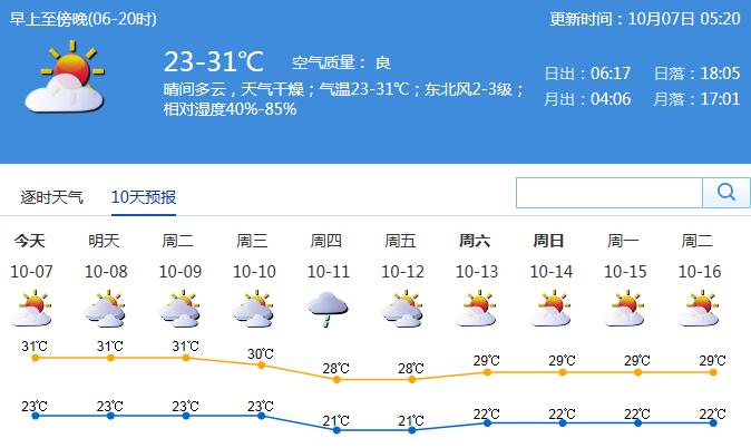 預(yù)計10月7-9日我市多云間晴天,氣溫23℃-31℃,空氣濕度將略有回升,但最小相對濕度仍在50%或以下,干燥天氣持續(xù)。未來三天天氣總體穩(wěn)定,氣溫波動不大,適合外出活動,戶外活動需多補充水分,適當(dāng)做好護膚措施。