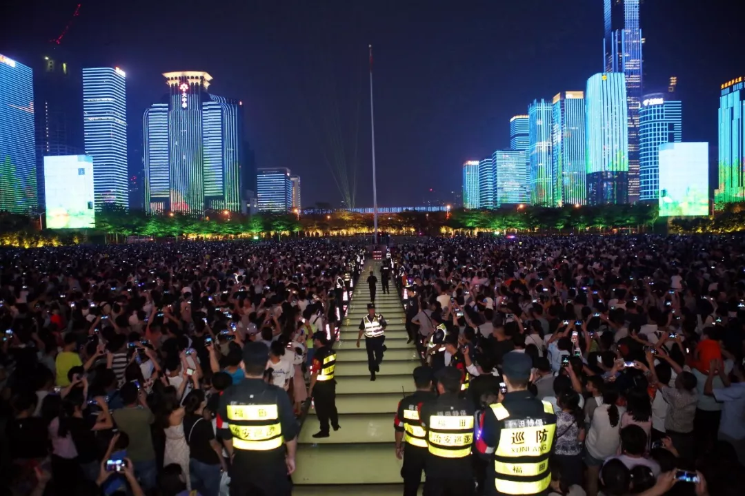 深圳市民中心是開放式場(chǎng)地,每天下午18時(shí)許,龐大的人流開始從四面八方涌來(lái)觀看燈光秀,給周邊道路交通和現(xiàn)場(chǎng)管理帶來(lái)極大壓力。福田警方周密部署、科學(xué)設(shè)置“七道防線”和“八片防區(qū)”,設(shè)立現(xiàn)場(chǎng)指揮中心,采取“核心封控、近端管控、遠(yuǎn)端疏導(dǎo)”的方式疏導(dǎo)擁擠人流。劃分管控區(qū)域、加裝現(xiàn)場(chǎng)防沖撞設(shè)施、開展武裝巡邏;各部門捆綁作業(yè)、疏散有序、措施到位。