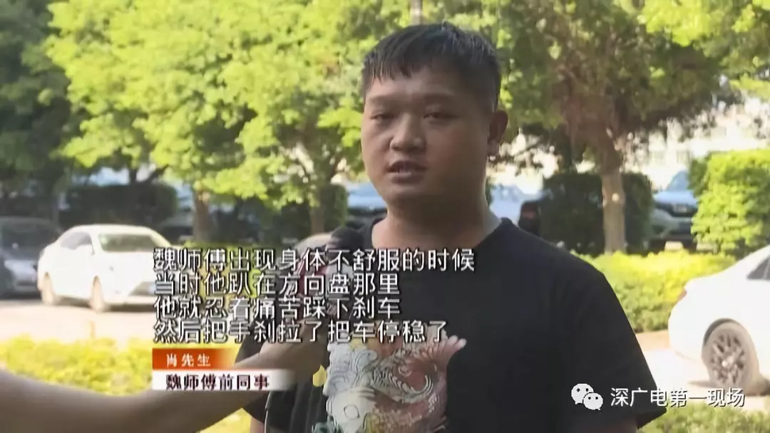 蕭先生是魏師傅的前同事,當(dāng)天正好乘車出行,他親歷了魏師傅突發(fā)狀況的整個經(jīng)過。他告訴記者,魏師傅忍著巨大的痛苦,將車子停下之后,馬上向他求助。