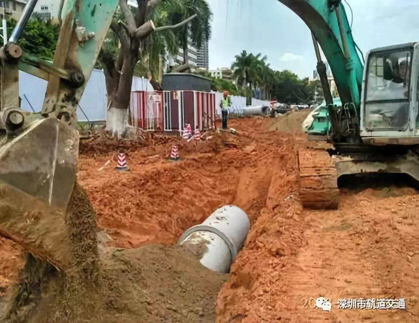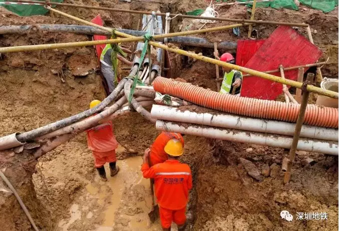 目前,深圳地鐵12號線黃田站綠化遷移設(shè)計439棵,累計完成439棵,完成100%;西側(cè)交通疏解倒邊施工已完成;西側(cè)通信管線下沉保護(hù)1300米,并完成新建通訊井兩座。給水管線改遷340米,電力管線下沉保護(hù)640米,并完成新建電力井一座。燃?xì)夤芫€保護(hù)183米,DN200燃?xì)夤芫€封堵完成。完成雨污水管線開槽直埋26米,累計各類管線保護(hù)及改遷完成100%。