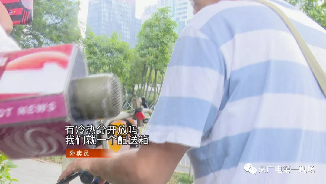 隨后送來(lái)的三份外賣里,冷飲和飯菜同樣是混合放在一個(gè)外賣箱中一起送過(guò)來(lái)。大部分外賣員反映,外賣箱沒(méi)有明確區(qū)分冷藏和熱藏區(qū)成了最大問(wèn)題,對(duì)于商家統(tǒng)一打包的冷飲和熱飯菜,他們大多也都不會(huì)主動(dòng)去分開(kāi)運(yùn)送。