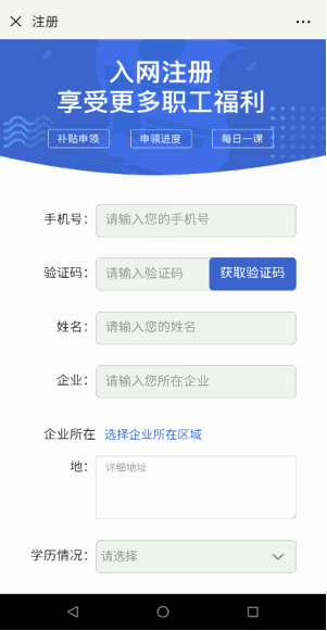 1.新注冊(cè)職工必須填寫完整信息--點(diǎn)擊提交資料--完成注冊(cè),系統(tǒng)自動(dòng)跳轉(zhuǎn)領(lǐng)取補(bǔ)貼頁面;