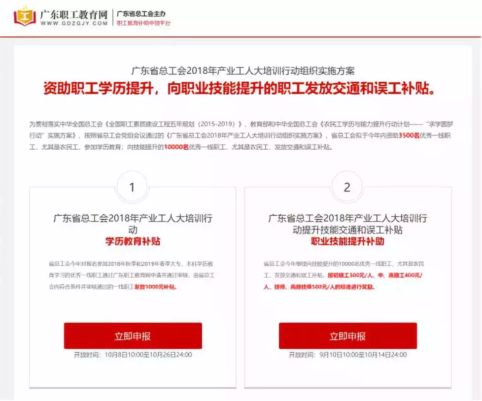 為提高我省產(chǎn)業(yè)工人隊(duì)伍素質(zhì),幫助更多產(chǎn)業(yè)工人提升技能水平,按照省總工會(huì)黨組會(huì)議通過的《廣東省總工會(huì)2018年產(chǎn)業(yè)工人大培訓(xùn)行動(dòng)組織實(shí)施方案》,省總工會(huì)繼續(xù)向10000名技能提升的優(yōu)秀產(chǎn)業(yè)工人發(fā)放交通和誤工補(bǔ)貼。取得職業(yè)資格證書可獲300~500元補(bǔ)貼,名額有限,先到先得!