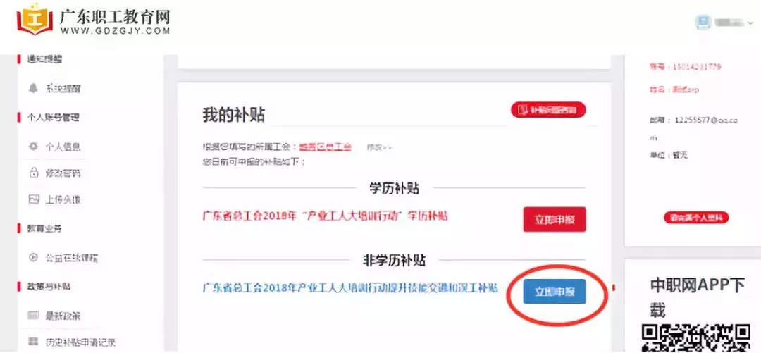 第四步:正式進(jìn)入職工教育補(bǔ)貼申領(lǐng)平臺(tái)。