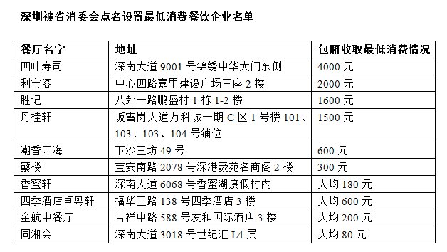 原標題:餐館仍設(shè)最低消費深圳10家餐飲企業(yè)被省消委會點名