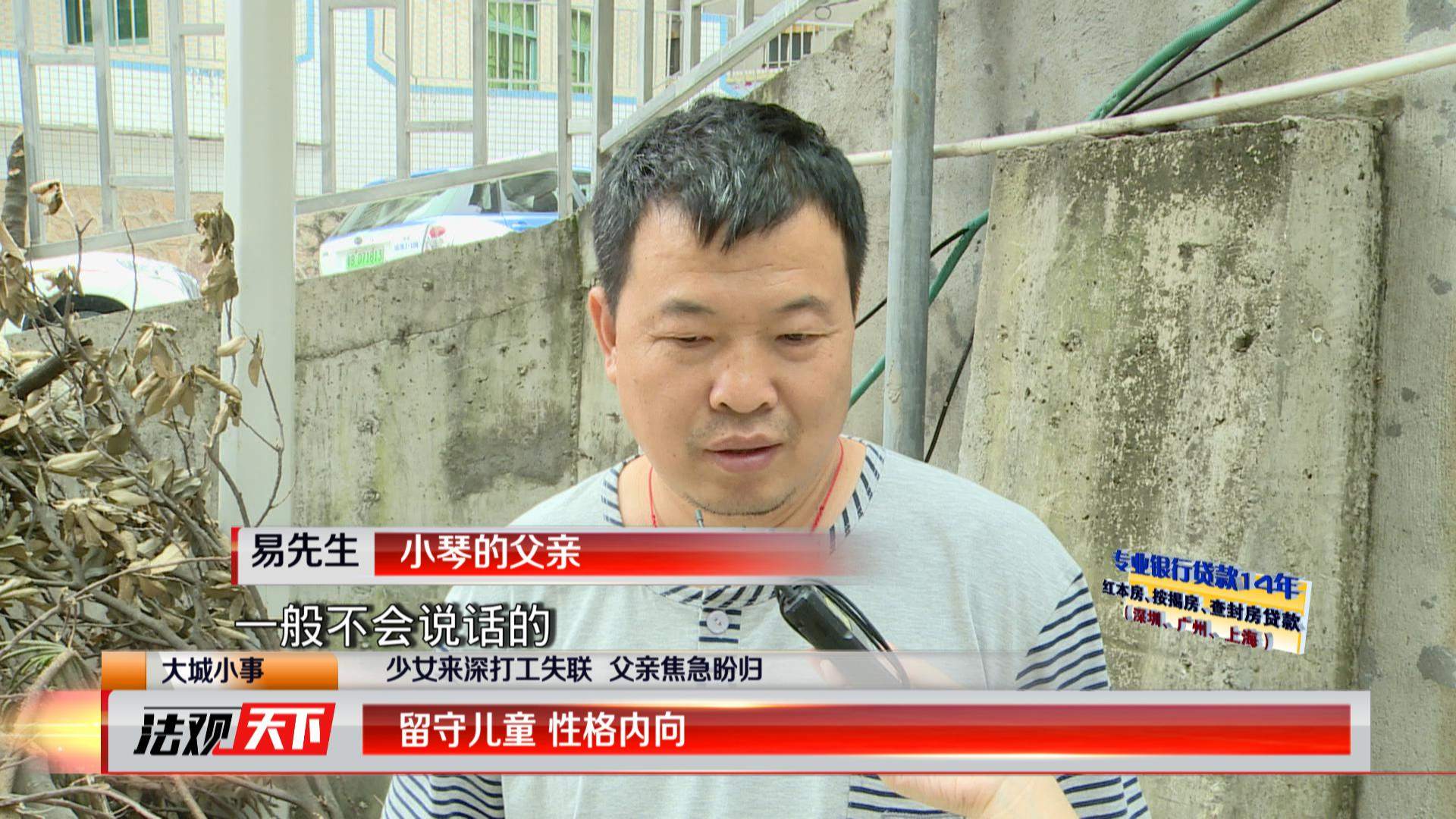 與小琴一起失蹤的還有小海,小海今年才14歲,是小琴的初中同學(xué),兩人當(dāng)初是一起從邵陽逃學(xué)來到深圳的。小海和小琴來到深圳后,跟易女士進(jìn)了同一家工廠。9月30號晚上,正是易女士最先發(fā)現(xiàn)兩個女孩失蹤的。她告訴記者,此前兩個孩子一直都很正常。女兒突然不辭而別,至今十多天沒有跟家人聯(lián)系,她既擔(dān)心又不解。小海的母親易女士告訴記者,這么多年以來,都是小海的奶奶把她帶大的。自己一直在外面打工掙錢,覺得小海跟她的感情也不深。