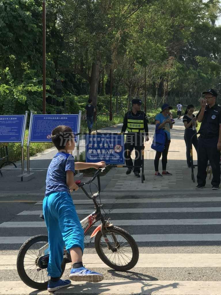 由于周六日深圳灣公園不讓進,而從蛇口新街到濱海沙河西立交橋這段路在公園內(nèi),該網(wǎng)友只能改從望海路騎至濱海沙河西立交,當準備由濱海沙河西立交騎行到深南沙河西立交時,又被告知這條騎行道同樣在深圳灣公園管轄范圍內(nèi),不準進。最后,網(wǎng)友只能帶著孩子沿沙河西路極其狹窄且危險的小道騎行到深南大道,再接著騎到深南沙河西,最終才到達大沙河公園(大沙河東側(cè)的沿岸)。