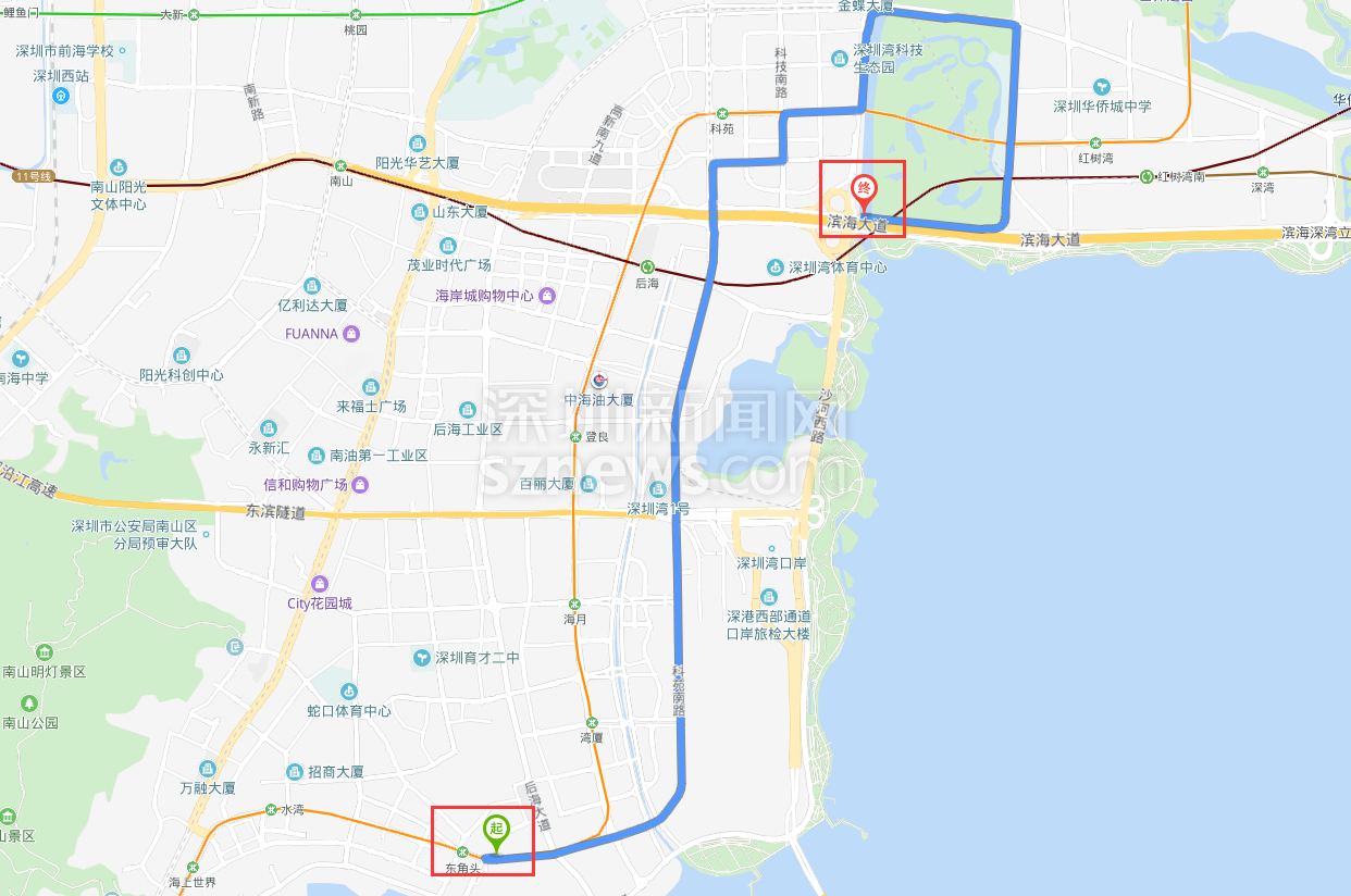 百度地圖中濱海沙河西立交到深南沙河西立交的騎行路線