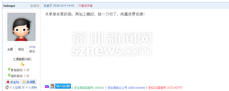 在深圳不斷推進(jìn)的城市建設(shè)進(jìn)程中,共享單車的禍,就不應(yīng)該由全體市民來(lái)“埋單”,更不應(yīng)該以犧牲市民的幸福感作為“除禍”的妙招。我們都期待,未來(lái)的深圳能用更合理、更人性化的措施,代替簡(jiǎn)單粗暴的“一刀切”。
