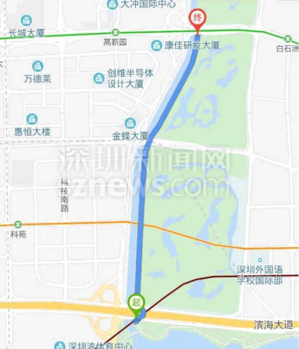 由于周六日深圳灣公園不讓進(jìn),而從蛇口新街到濱海沙河西立交橋這段路在公園內(nèi),該網(wǎng)友只能改從望海路騎至濱海沙河西立交,當(dāng)準(zhǔn)備由濱海沙河西立交騎行到深南沙河西立交時(shí),又被告知這條騎行道同樣在深圳灣公園管轄范圍內(nèi),不準(zhǔn)進(jìn)。最后,網(wǎng)友只能帶著孩子沿沙河西路極其狹窄且危險(xiǎn)的小道騎行到深南大道,再接著騎到深南沙河西,最終才到達(dá)大沙河公園(大沙河?xùn)|側(cè)的沿岸)。