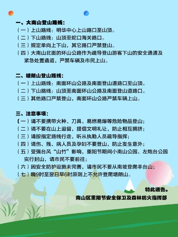 南山區(qū)重陽節(jié)登山通告