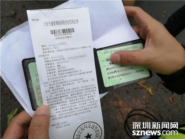 深圳交警對(duì)泥罐車(chē)司機(jī)開(kāi)出罰單:罰款100元扣2分