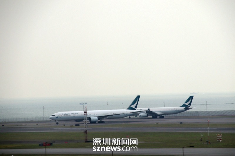 打開右手邊車窗,就可以看到香港機場的停機坪
