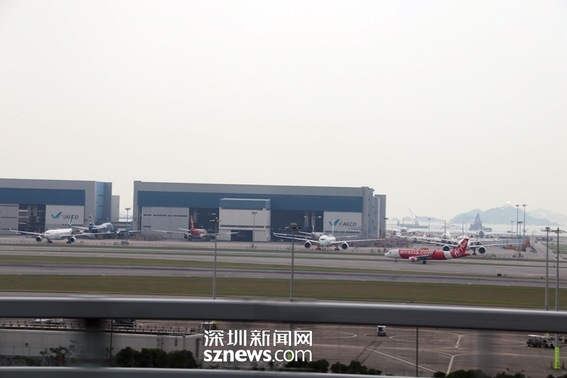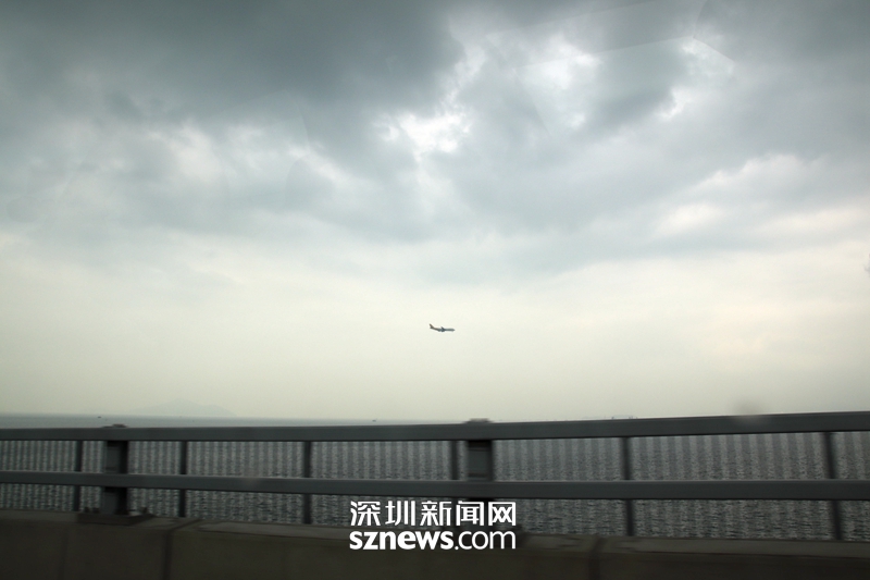 由于港珠澳大橋香港起點就在香港機場地塊,每隔幾分鐘就有飛機掠過天空
