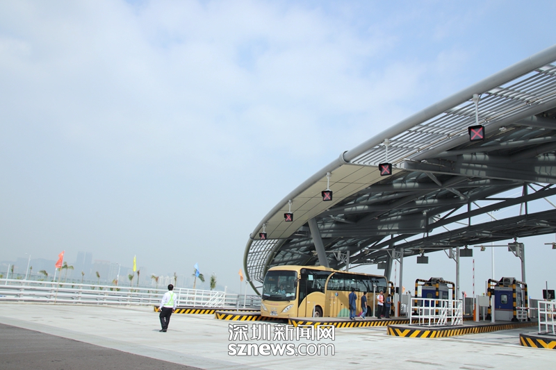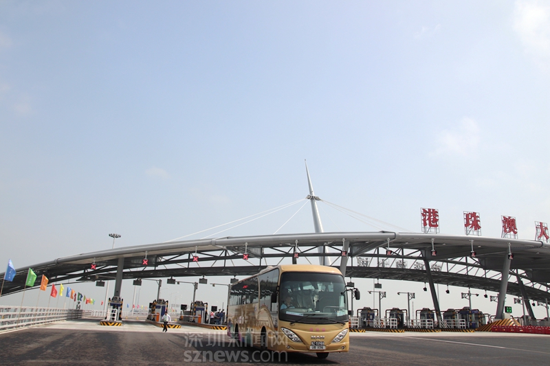 又一輛穿梭大巴抵達港珠澳大橋珠??诎洞髽?/p>