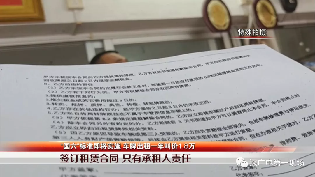 車牌、指標的錯位市場,衍生了車牌出租的利益。二手車行在這過程中處于主導(dǎo)的地位,他們規(guī)定在車牌租用之前,承租人需要簽訂一份租賃合同,按理說合同應(yīng)該劃分雙方的責(zé)任,然而記者發(fā)現(xiàn),合同明確指出了租牌者違約應(yīng)當(dāng)承擔(dān)的責(zé)任,條款多達10多項。