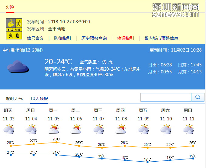 市氣象局發(fā)布未來十天天氣預報(數據更新于11月02日10時28分)