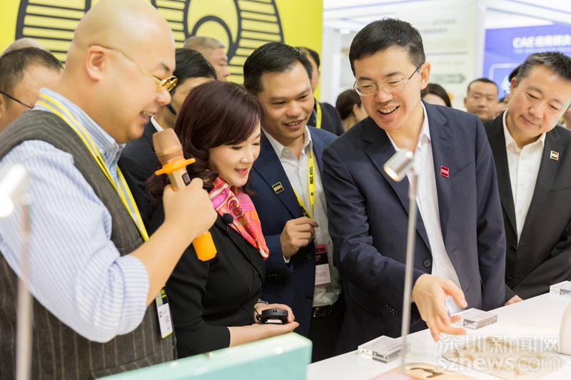 深圳市副市長(zhǎng)艾學(xué)峰(右二)參觀第六屆深圳國(guó)際工業(yè)設(shè)計(jì)大展的設(shè)計(jì)作品(主辦方供圖)