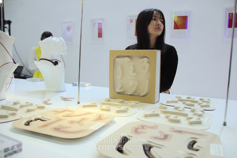將漢字筆畫拆開分別做成容器,每個(gè)筆畫的凹槽里放著茶餅