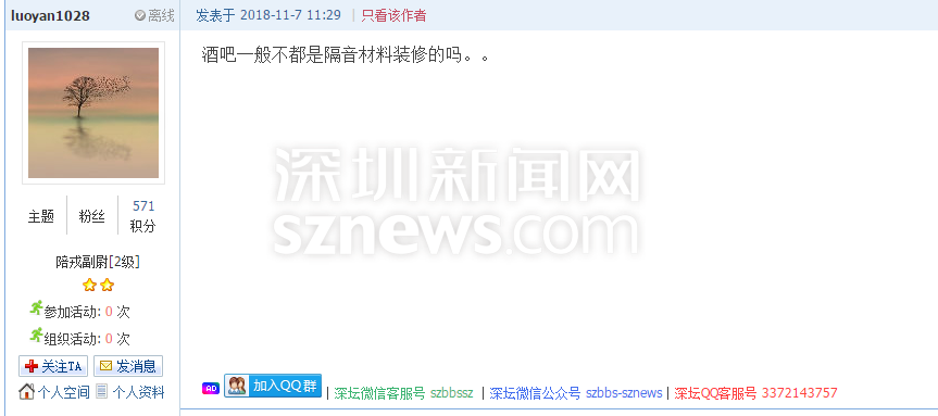 “酒吧一般不都是隔音材料裝修的嗎?”網(wǎng)友“l(fā)uoyan1028”在回復(fù)該帖文時提出了自己的疑問。眾所周知,高速公路兩旁,常常設(shè)有隔音板以減少噪音污染,降低對周圍居民的影響。那么作為以營利為目的,并向公眾開放、消費(fèi)者自娛自樂的歌舞、游藝的酒吧場所,裝修時使用隔音材料就更是必不可少了。只是,這所米蘭國際酒吧真的安裝了隔音板嗎?