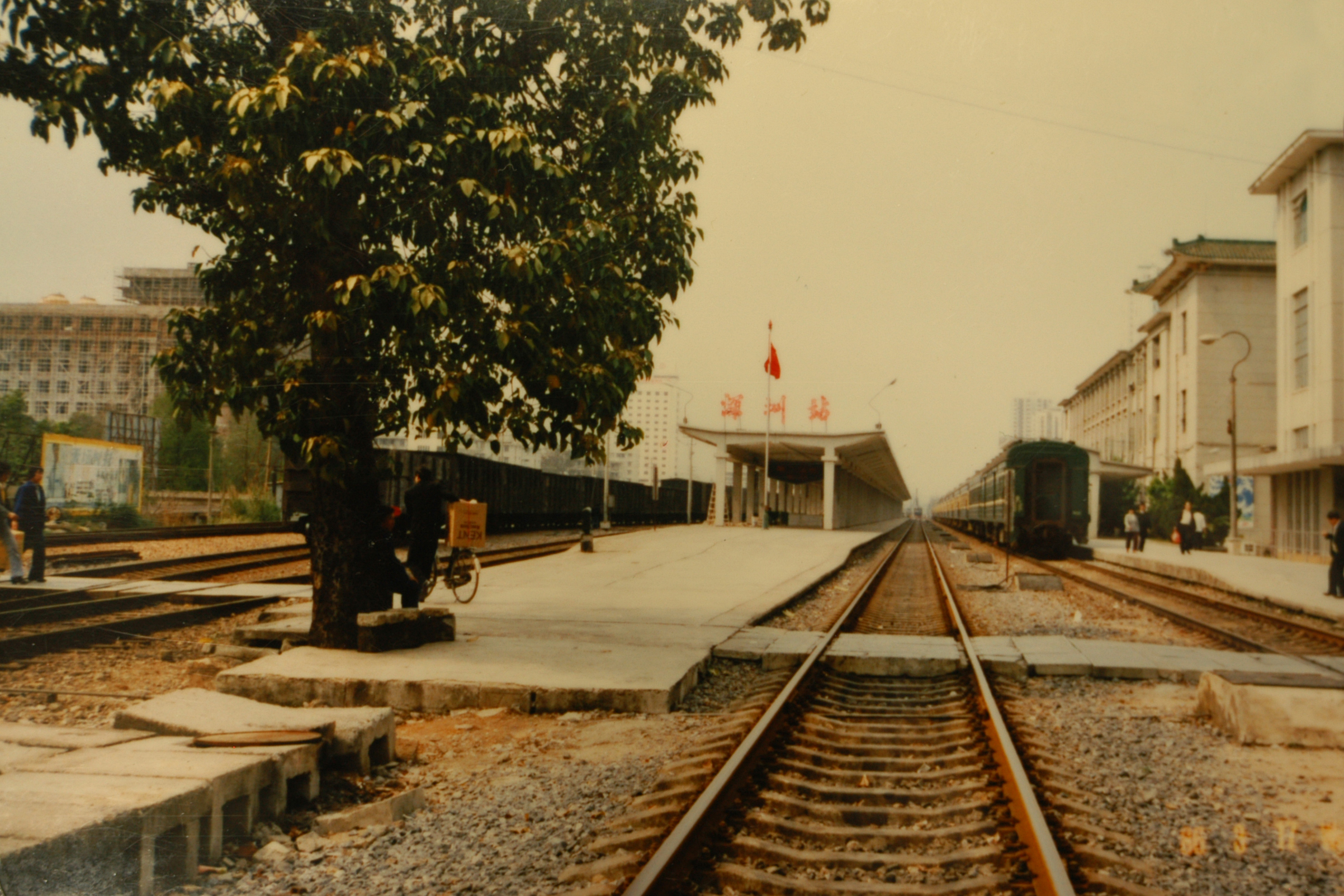 90年代,廣深線開行的列車為綠皮火車。圖中站內(nèi)指揮員引導列車