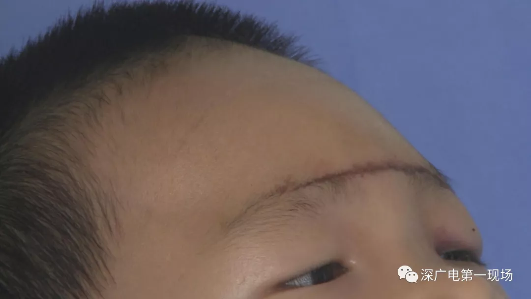 對于這種“眉弓部皮膚裂傷”,為了盡量不影響小孩術后的外觀,院方使用了現(xiàn)階段最細的眼科縫線,這種線一般用作眼球縫合,希望愈后疤痕盡可能的小。