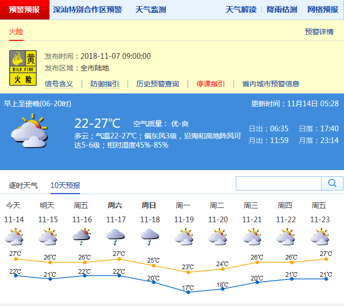 深圳新聞網(wǎng)11月14日訊(記者 陳婕)@深圳人,溫度并不高的中午,適合出去吹吹小風(fēng),散散小心,睡睡小覺。趁天氣好,還可以曬曬被子!過幾天天就沒那么好了,距離周末的冷空氣還有幾天準(zhǔn)備時(shí)間,這次不會(huì)讓你們太失望,都可以準(zhǔn)備好長(zhǎng)袖了!