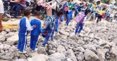 另有網(wǎng)友跟帖表示:同學(xué)們求學(xué)路坎坷,看得揪心!從現(xiàn)場(chǎng)圖可以看到,學(xué)生上下學(xué)都要穿過工地。路面被挖開,道路邊上只留下很窄的一條小道。上下學(xué)高峰期,成群結(jié)隊(duì)的學(xué)生在碎石穿行,旁邊小道上行人、三輪、電動(dòng)單車堵成一鍋粥,存在很大的安全隱患。