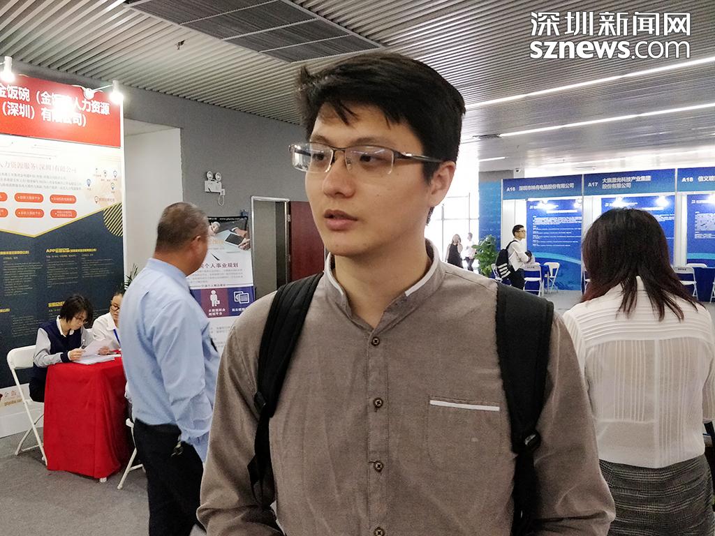 現(xiàn)場應(yīng)聘的劉先生已有一年的工作經(jīng)驗(yàn),此次高端人才招聘會(huì)的信息是通過深圳市人力資源社會(huì)保障局的微信公眾號(hào)得知,故來到現(xiàn)場希望尋得一個(gè)對口的崗位。