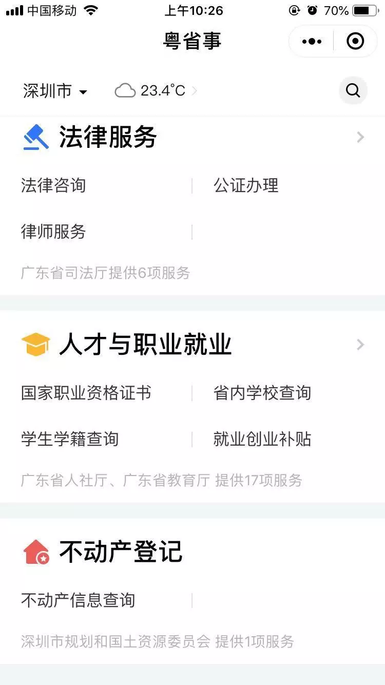 1、關(guān)注“粵省事”公眾號(hào),點(diǎn)擊菜單欄“個(gè)人中心”-“指尖辦事”