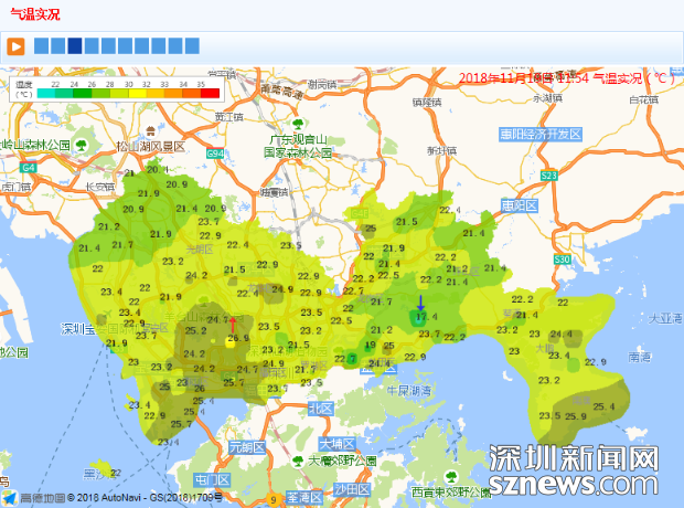 市氣象局發(fā)布自動(dòng)站監(jiān)測(cè)氣溫實(shí)錄(數(shù)據(jù)更新于11月19日11時(shí)54分)