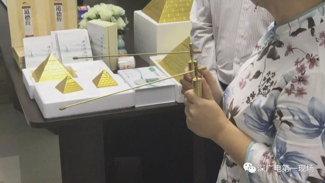 一開始,就上來了一位叫許姐的團隊負責人,但她并沒有著急介紹主角“萬能金字塔”,而是不慌不忙地賣弄起另一樣所謂的“神器”——尋龍尺。