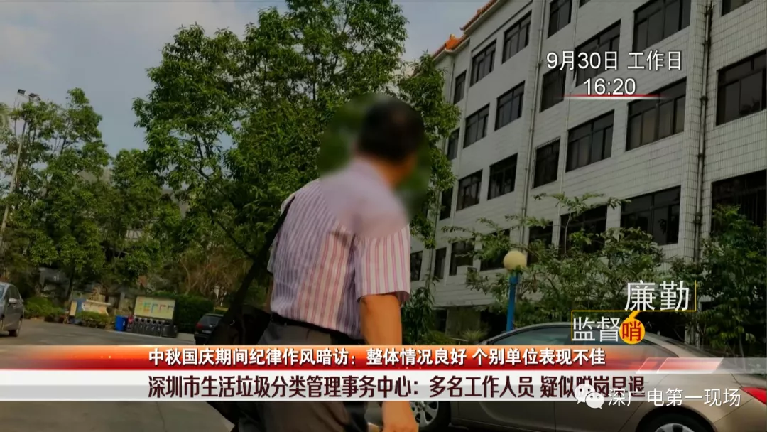 就在下午四點到四點半之間,暗訪組成員還發(fā)現(xiàn),有大量深圳市生活垃圾處理監(jiān)管中心和深圳市生活垃圾分類管理事務(wù)中心的工作人員離開單位,疑似脫崗早退。