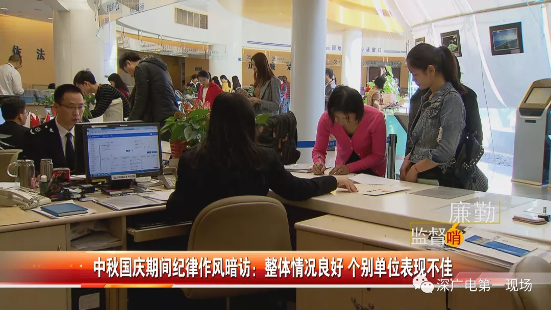 中秋、國慶雙節(jié)期間,市紀委監(jiān)委和深圳廣電集團聯(lián)合暗訪組共出動232人次,分別前往大鵬新區(qū)稅務(wù)局、大鵬新區(qū)衛(wèi)生監(jiān)督所、大鵬新區(qū)公共事業(yè)局、坪山區(qū)教育局,坪山區(qū)建筑工務(wù)局、光明區(qū)社保分局、光明區(qū)衛(wèi)生監(jiān)督所等47個市、區(qū)單位及下屬部門獨立辦公場所,進行暗訪調(diào)查。多數(shù)單位人員齊整,工作秩序井然,前來咨詢辦事的市民能夠得到及時、有效的接待服務(wù),沒有發(fā)現(xiàn)違規(guī)收受“紅包”禮金等“四風(fēng)”問題。不過,聯(lián)合暗訪組還是發(fā)現(xiàn)了個別單位存在工作紀律渙散、提前早退脫崗等問題,作風(fēng)存在軟、松、散情況。