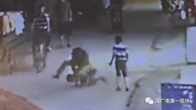 將小月按倒在地后,一名成年男子對(duì)著孩子的頭部打了五拳,看到圍觀市民越來越多,男子帶著身邊的男孩離開。