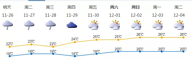 25日多云轉(zhuǎn)陰天,傍晚前后有零星小雨,早晚清涼,19-24℃;26-28日天空云量較多,間中有小雨,雨時(shí)能見度稍低;29日起多云,可見陽光。近期干燥少雨,降雨來臨前仍需做好防火安全管理。