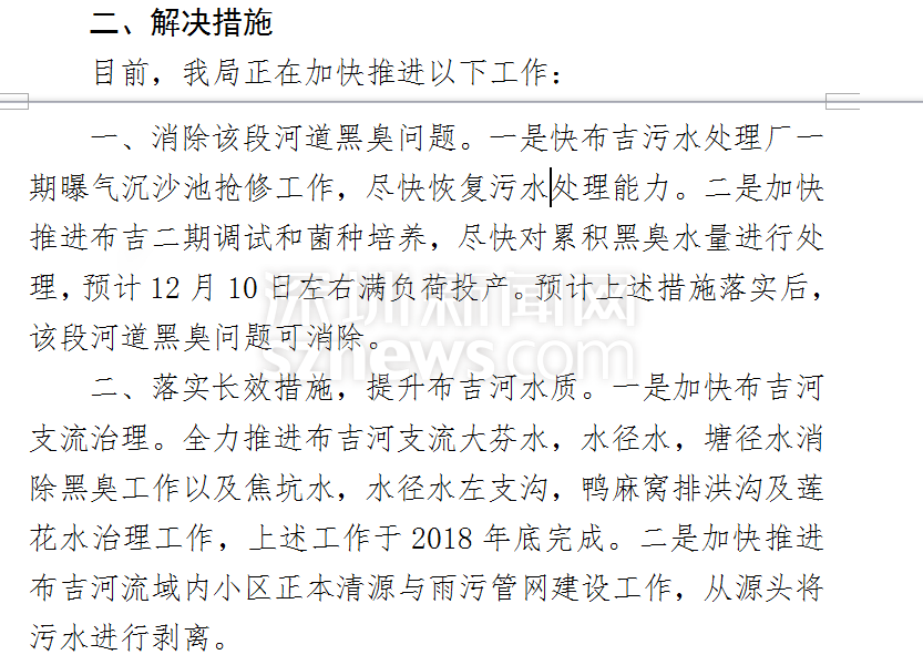 針對上述疑問,龍崗區(qū)環(huán)水局承諾將抓緊推進(jìn)布吉污水處理廠一期曝氣沉沙池?fù)屝薰ぷ鳎M快恢復(fù)污水處理能力,而二期工程也預(yù)計于12月10日左右滿負(fù)荷投產(chǎn),以上措施落實(shí)后,該環(huán)水局認(rèn)為此段河道黑臭問題便可消除。為了保障治水工作長期有效,環(huán)水局還制定了加快布吉河支流治理及加快推進(jìn)布吉河流域內(nèi)小區(qū)正本清源與雨污管網(wǎng)建設(shè)工作的計劃。