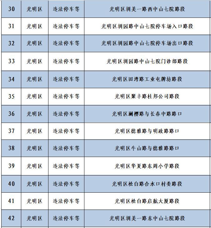 深圳新聞網(wǎng)12月10日訊(記者 何暢)據(jù)“深圳交警”微信公眾號消息,深圳56套“電子警察”新上線,其中46套專門查處違法停車,4套用于查處泥頭車違反禁行限行規(guī)定,6套用于查處沖紅燈、逆行、進(jìn)入導(dǎo)向車道變更車道等違法行為。56套“電子警察”具體分布位置如下: