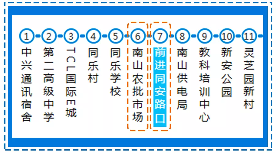 ▲學(xué)校附近有兩個(gè)公交站臺(tái)——前進(jìn)同安路口站和南山農(nóng)批市場(chǎng)站。