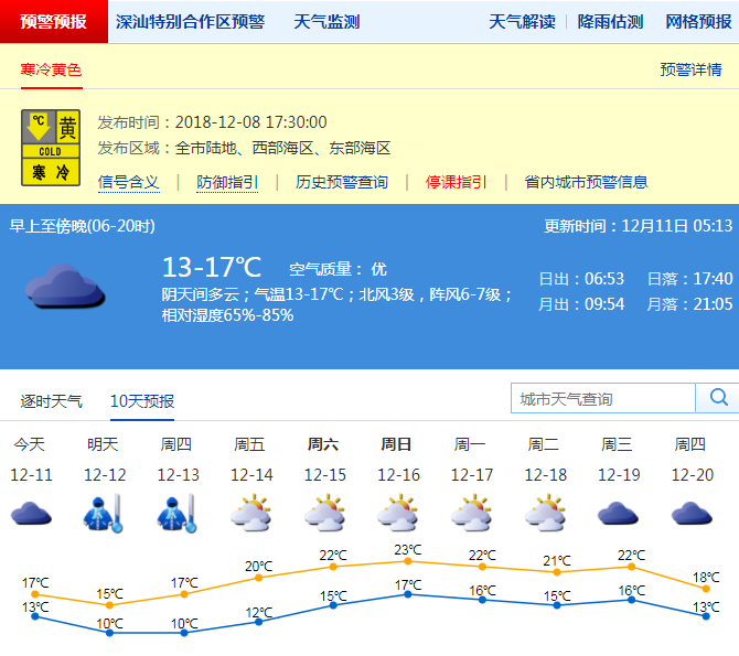 市氣象局發(fā)布未來十天天氣預(yù)報(bào)(數(shù)據(jù)更新于12月11日5時(shí)13分)