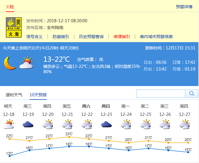 市氣象局發(fā)布未來十天天氣預報(數據更新于12月17日15時31分)